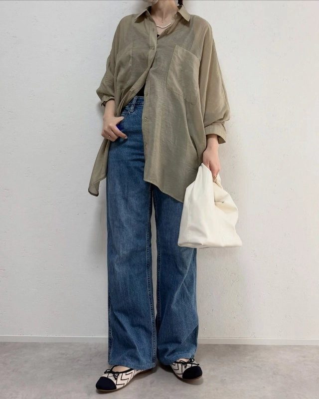 ■【春】40代にもおすすめのシースルーシャツ・シアーシャツコーデ