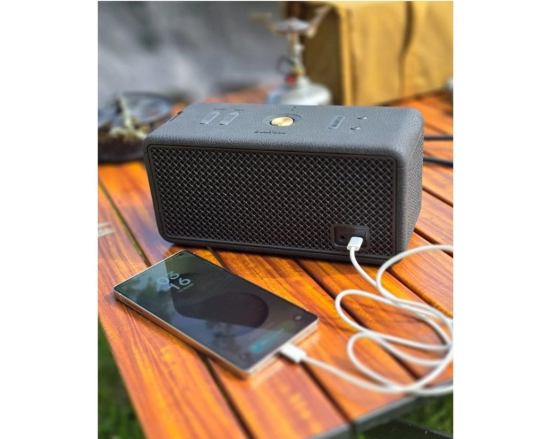 さらに、バッテリー機能も搭載。万が一、スマホの充電がなくなってもこのミドルトン IIから充電できるので、キャンプでのスマホ利用も心置きなくできます。最強スピーカーに小型ポータブル電源の付加価値は最高にエモい!