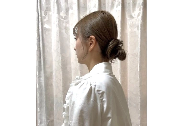 低めのお団子は上品な印象に見せてくれるので、ママのよそ行きアレンジにおすすめ。まとまりがありつつもふわっとした大人かわいいヘアスタイルなので、どんなシーンにもマッチしやすいですよ!パパとの夫婦デートや、おしゃれなママ友と女子会するときの勝負スタイルとしてもぜひ覚えておいてくださいね♡