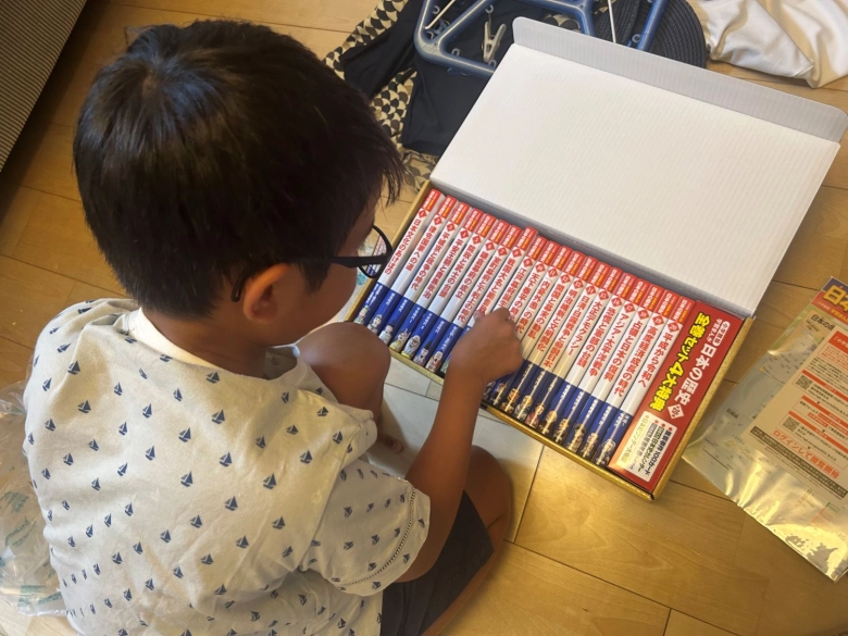 最後に夏休み前に購入したもの。「日本の歴史 漫画全巻」です。漫画が好きで最近歴史に興味が出てきた長男に、夏休みの間に読めたらいいなと思いました。ハマってくれたようで、そのぶん宿題が思うように進んでいないのが誤算かもしれません(笑)。だから子育てはおもしろいのかな?