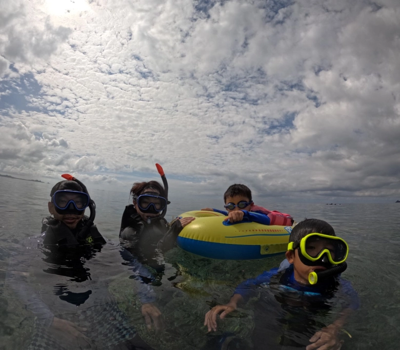 大人は、海に入って、その美しさと色とりどりの魚たちに魅了されました。ここでも次男は浮き輪に乗りながら寝ていましたが(笑)。そんな出来事も含め、息子達と一緒に体験できるのがうれしいものです。