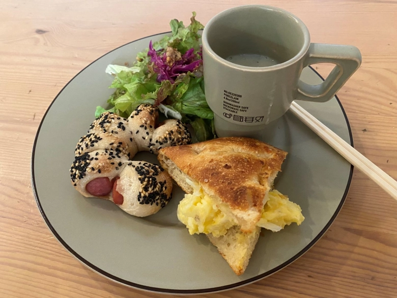 「こどもの館」から徒歩10分。乳幼児を連れたママ達でとても賑わっているお店を発見!日替わりの焼きたてパンがつくランチセットが大人気のカフェです。そしてさらにうれしいことに、この焼きたてのパン、おかわりが自由にできちゃうんです♡