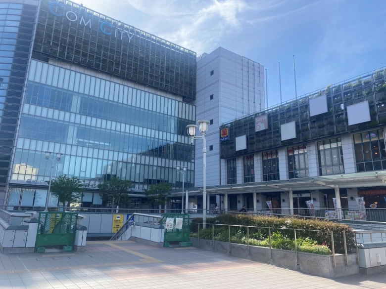 JR黒崎駅の隣にあるCOMCITYの7階にある北九州市立「子どもの館」へ。駅と直結しているので雨の日でも濡れずに移動ができます。車の場合は市営黒崎駅西駐車場の7階に駐車すると、連絡通路を通って館内に入れます。
