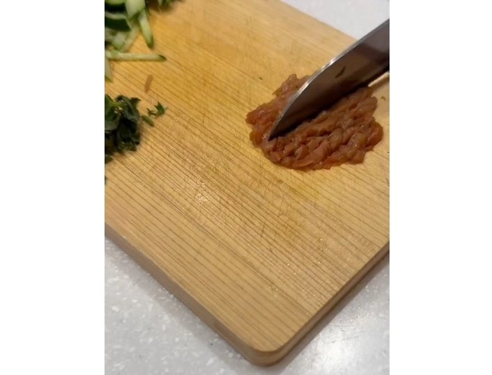 まず斜め切りしてからそれを重ねて細く切っていくと切りやすく早いですよ。このシャキシャキとした歯ごたえも食欲をそそってくれます♪
