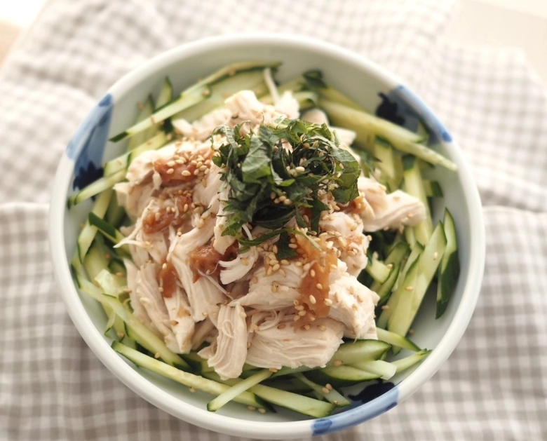 「夏バテ中はつい、冷たい素麺やお蕎麦など“さっぱり系”に偏りがちですが、回復にはしっかりたんぱく質を摂ることが大切です!ささみがメインのこのレシピで、良質なたんぱく質をたっぷりチャージしてくださいね。知ってる方も多いと思いますが、梅のクエン酸には疲労回復効果があるので、こちらもこの時期、積極的に摂りたい食材です。
