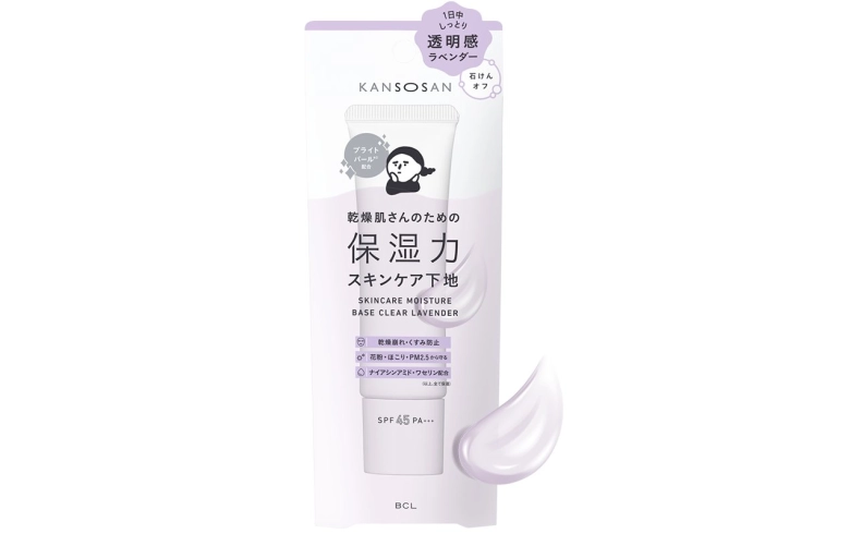 乾燥崩れ予防だけでなく肌を明るい印象にしたい方には、「乾燥さん 保湿力スキンケア下地 透明感ラベンダー」がおすすめ。肌に透明感をプラスするパープルカラーに、ツヤを出すブライトパールも配合しており、ナチュラルにくすみを隠してくれます。口コミでは「パール配合なので、これだけで透明感があってつやつやの肌に見える」「ファンデを塗ってもツヤが失われないので、リピートしている下地です!」との声が。仕上がりの美しさやファンデの下地としての機能が評価されているようです。