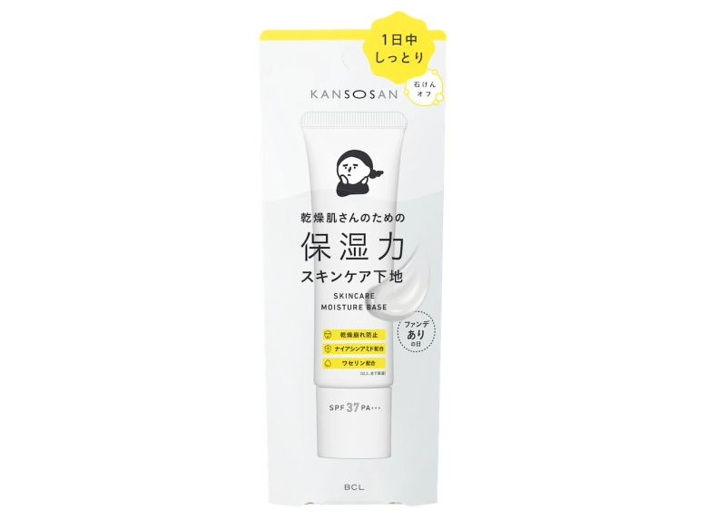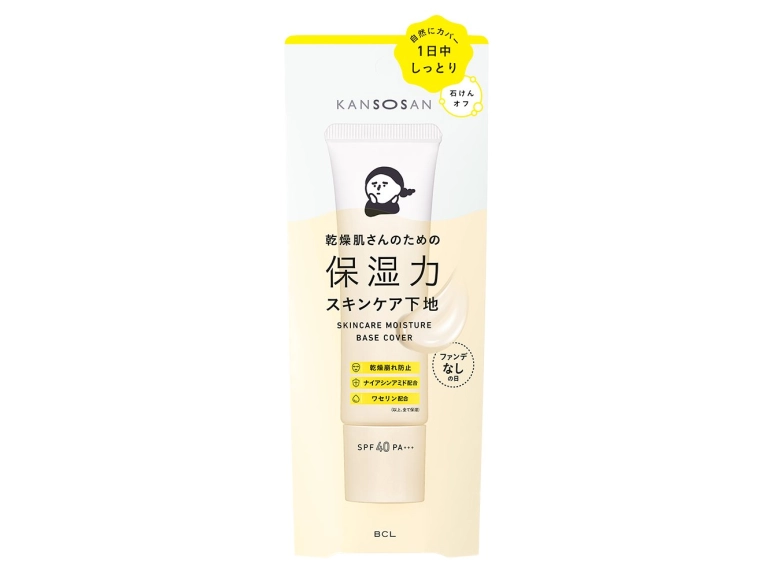 乾燥肌に悩む方や、秋冬に乾燥を感じやすい方におすすめなのが、白いパッケージの「乾燥さん 保湿力スキンケア下地」です。日中のカサカサを防ぎながら、長くしっとり感がつづきます。洗顔後これ1本で、化粧水、美容液、乳液、クリーム、UVケア、化粧下地として使えるので、メイクの時短も可能。ただし、透明感のある白いクリームでカバー力はないため、ファンデーションを重ねる日に使うのがおすすめです。口コミでは「軽いつけ心地で伸びがいい」「ファンデを塗る前に使うと化粧ノリがよくなった」との声が目立ちました。