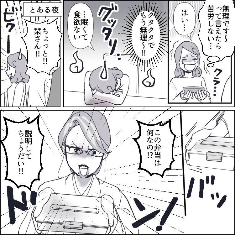 栞の手作り弁当を見て声を荒げる姑!しかしこの後、まさかのスカッと展開で夫を撃退することに!?