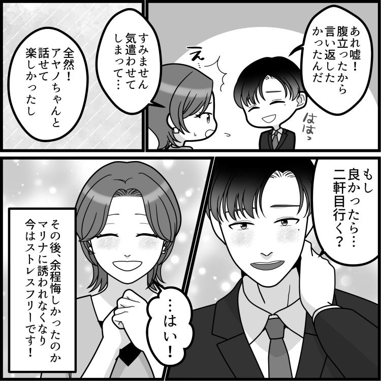 アヤノのことを悪く言うマリナに対してガツンと言い返してくれた梶原さん。彼のおかげでマリナに絡まれなくなったようで良かったですね!