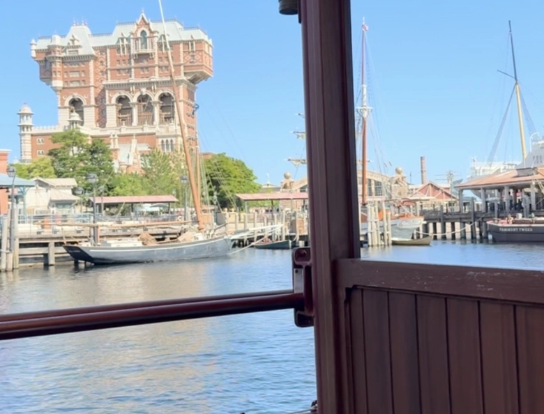まずは昨年オープンした新エリア「ファンタジースプリングス」に行きたかったので、エントランス近くのメディテレーニアンハーバーから出航している船型アトラクション「ディズニーシー・トランジットスチーマーライン」で船旅を楽しみながら移動しました。屋根つきで風も通り、直射日光を避けられるうえ、ベビーカーごと乗れるのが子連れにはありがたいポイント!涼しく快適に、新エリア近くの乗り場であるロストリバーデルタにあっという間に着きました。