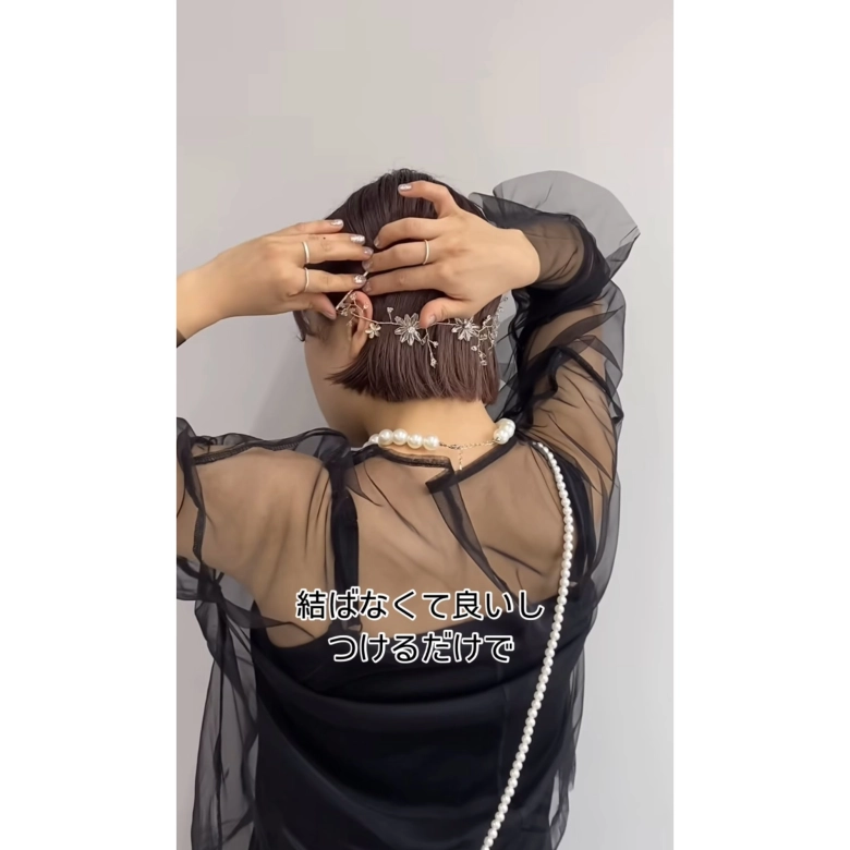最後に、ショートボブの方にぴったりなヘアアレンジを紹介します。ピンなどをうまく使うことで、ショートボブが持つ清楚な魅力はそのままに、遊び心や大人の品格をプラス。結べない長さでも、こなれ感のあるスタイルが簡単に楽しめますよ。