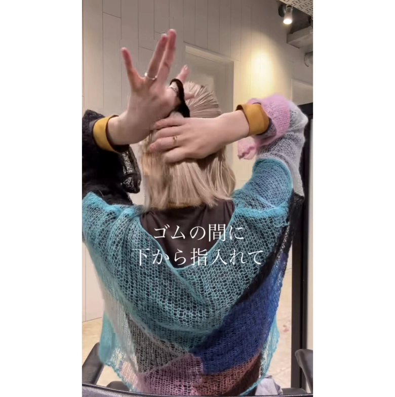 - 毛先まで抜かず、ヘアゴムで固定して完成