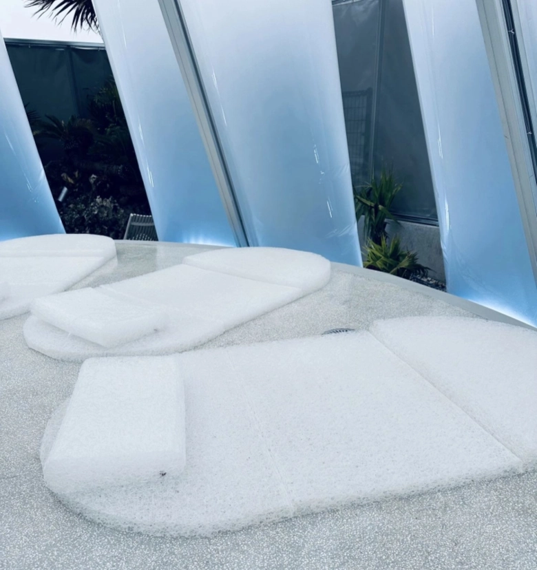 『太陽のつぼみ』は太陽工業株式会社が中心となって展開するパビリオンです。太陽工業は「膜」を生産する会社で、有名なところでは東京ドームの天井の膜や、今回の万博の会場のある夢洲駅、最近では高輪ゲートウェイなど、普段、私たちが生活する中で知らず知らずのうちに快適空間を作ってくれているのが太陽工業です。