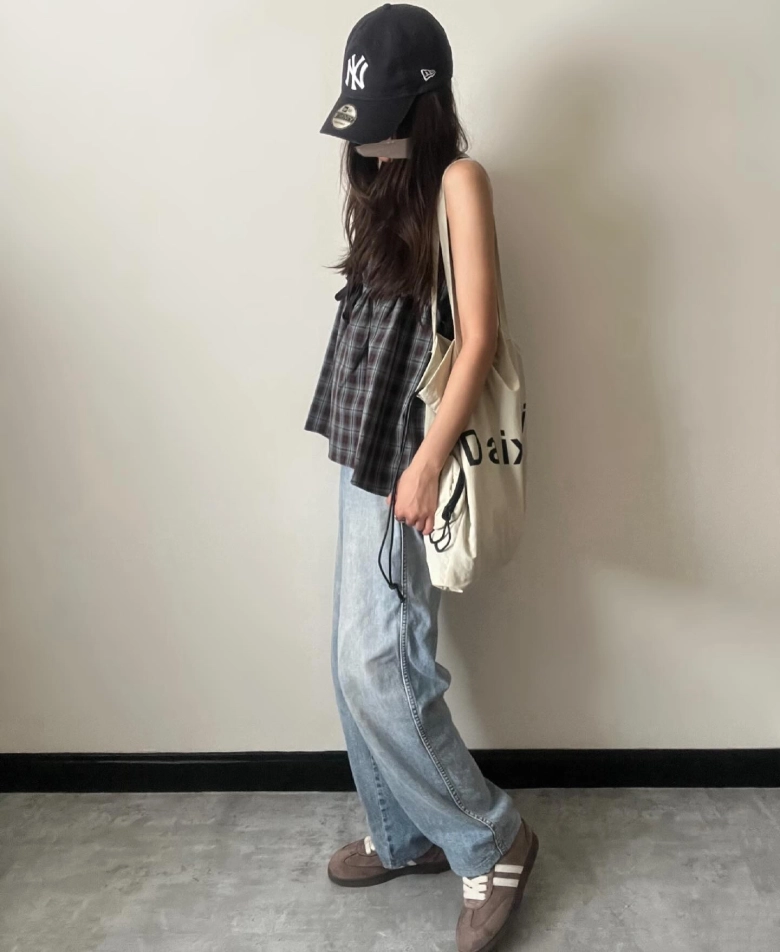 @sa_channn_さんは、ちょっぴりガーリーなカジュアルコーデにブラウンスニーカーをプラス。チェックリボンキャミの色味ともマッチしていて、コーデに統一感が生まれています。秋冬のトレンドカラー、ブラウン&アイスブルーの組み合わせもGOOD!スエード素材のスニーカーとも相まって、秋の風を感じる素敵なコーディネートです。