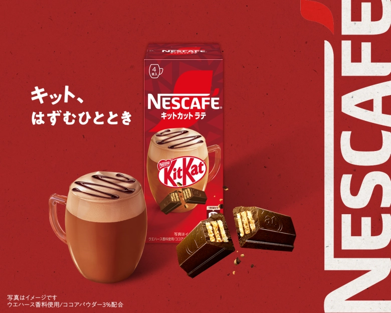 キットカットと言えば、層になったサクサクのウエハースがチョコレートでコーティングされているのが特徴的でおいしいですよね。「ネスカフェ キットカット ラテ」はそんな味わいをラテでいただけるんです。ウエハースの食感はありませんが、香り高く漂い存在をアピール、まろやかなチョコレートやコーヒーの豊かな風味と見事にマッチングしています。