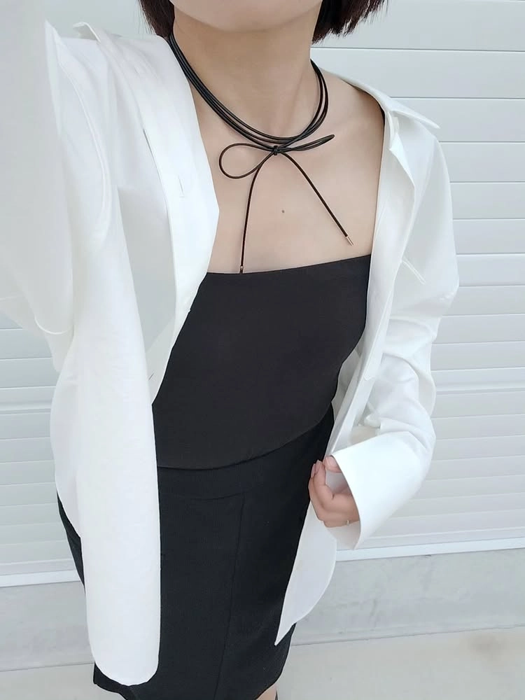 ゆとりのあるシルエットのシャツは1枚で着てもかわいいですが、フロントのボタンをすべて開けて羽織りにするのもおすすめ。きれいめながらも、リラックス感のあるスタイルに仕上がります。羽織りにするときは、襟を少し下げて抜き襟にするのがポイント!冷房が効いた室内での冷え対策として、今の季節から活躍しますよ。@chanchanochaさんは、ドルマンスリーブシャツ以外のインナーやスカート、ネックレスは黒をチョイス。シンプルなモノトーンコーデですが、ひと癖あるシャツを羽織ることで目を引くコーデに仕上がっていますね。