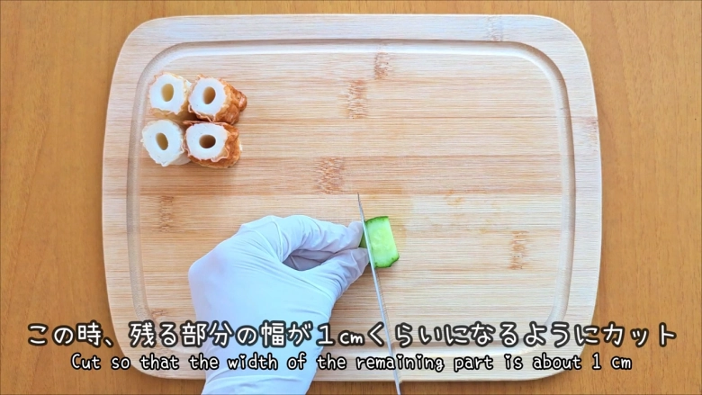残るキュウリの横幅が約1cmになるようにカットしましょう。