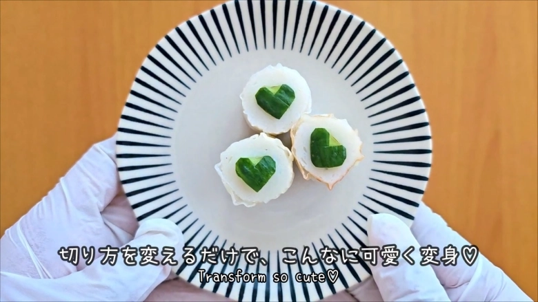 「5分でできる!」「運動会のお弁当にもピッタリ♡」子どもが喜ぶハートのちくわキュウリの作り方