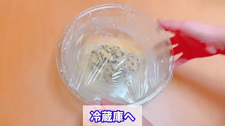 乾燥を防ぐためにボウルの上からももう一度ラップをかけ、そのまま冷蔵庫で約30分~1時間冷やしましょう。時間がない場合は冷やさなくてもOKです。