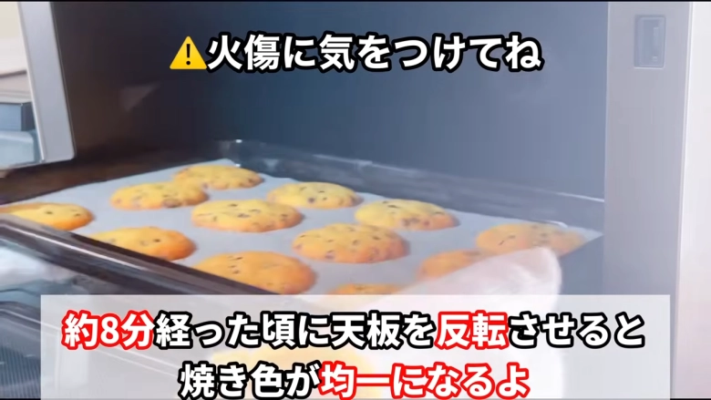 オーブンによって焼き時間が異なるので、たまに様子を確認してくださいね。焼き始めてから約8分後に天板を反転させると、均等に焼き色をつけられます。