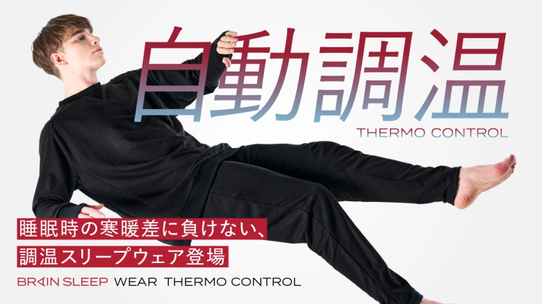 続いてご紹介するのは、寒暖差の疲労から体を守ってくれる「ブレインスリープ ウェア サーモ コントロール」。なんと、体の温度を自動で調整する素材が使われているんです!寝る前から起きるまで、体を最適な温度へとコントロール。「起きたときに疲れがとれない」「何度も目覚めてしまう」など、同じ悩みをもつママやパパ!そんなわずらわしさを改善した究極のスリープウェアがここにあります。