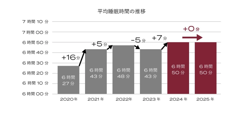 世界ワーストである日本人の平均睡眠時間はブレインスリープが調査を始めた2020年以降、7時間を下回ったままなんです。そんな私たちの睡眠負債を減らし、生活向上を目指すために“最高の睡眠で、最幸の人生を。”というスローガンを掲げたブレインスリープ。睡眠医学に基づき先進のテクノロジーを掛け合わせた安眠グッズは、同じ睡眠時間でも疲労回復を感じる!と、老若男女問わず、じわじわと浸透しています。