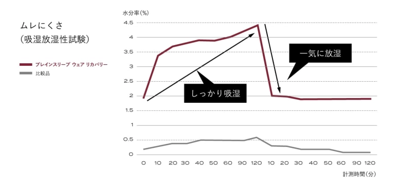 宇宙服のために開発されたアウトラスト(直径20〜30ミクロンのマイクロカプセル)の調温テクノロジーが、温度調整素材として取り入れられています。温度変化に応じて、吸熱、蓄熱、放熱を繰り返し、人が心地よいと感じる32℃±1に肌の表面温度を近づけ保ってくれるなんて驚きますよね。