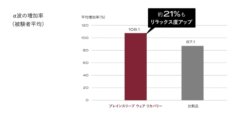 体温が上がり血のめぐりがよくなると、リカバリー効果が期待できるだけでなく、リラックスしているときに観測されるα波の増加率が約21%も上昇するようです。仕事や育児だけでなく、知らぬ間にたまっている日々のストレスも軽減されて、いつもよりスッキリとした目覚めを感じられそうですよね。