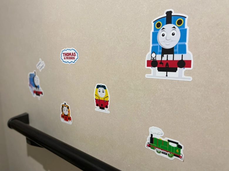 長男がトイレを嫌がるのは、「トイレが怖いからなのかな?」と考え、それならトイレに大好きなトーマスを貼ろう!とウォールステッカーを貼りました。トイレに連れて行くきっかけとしてはとても効き、「トーマスがおはようって言ってるよ〜!行ってみよう!」などキャラクターがトイレで待っている設定にすると、すんなり行ってくれることも多かったです。