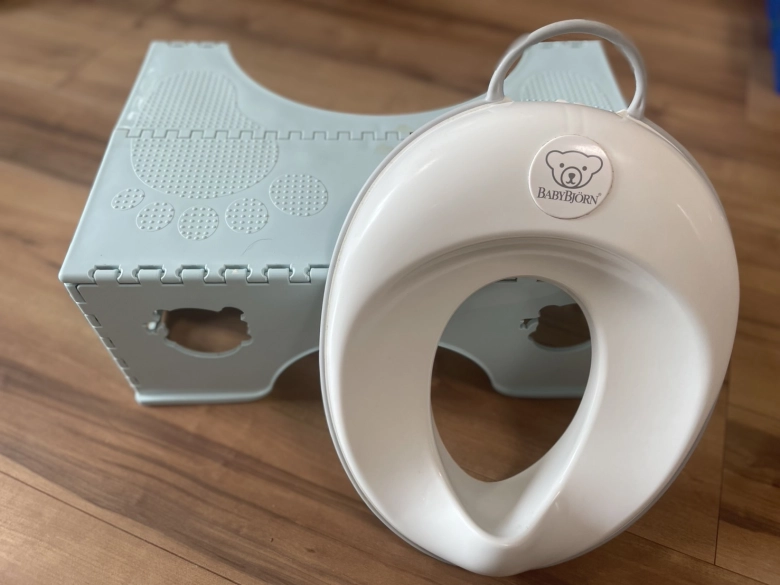 布おむつ生活と定期的なトイレ誘導は、イヤイヤ期と重なりうまくいかず断念。トイレに連れて行くことも嫌がるようになりました。その時、次男の妊娠・出産が重なり、一旦トイトレはやめて紙おむつで過ごすように。3歳ごろから「そろそろ始めないと!おむつを取らなきゃ!」と再度焦り始め、この時に色々とトイトレグッズをそろえ始めました。