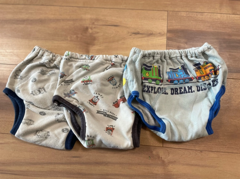 ただ、すぐに完了することはなく、何度も根気よく履かせては漏らすを繰り返していました。今思うと、まだ長男にとっては時期が早かったのかなと思います。
