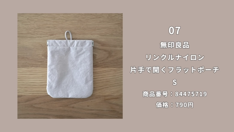 リンクルナイロン 片手で開くフラットポーチ S 790円