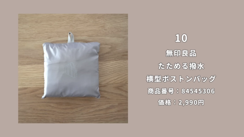 コンパクトに折りたためる、撥水加工が施された薄手のボストンバッグです。