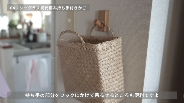 丈夫な水草(シーグラス)で編まれた、見た目もかわいい持ち手つきのかごです。