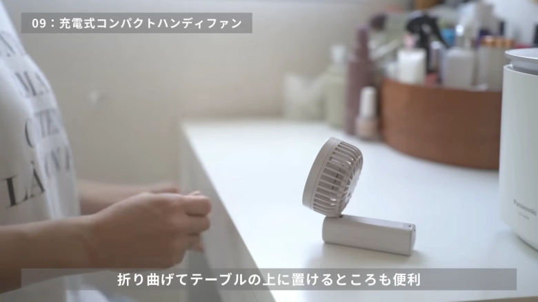 さらに、持ち手は折り曲げることができ、卓上ファンとしても使える優れもの♪お弁当や子どものごはんを冷ます際も使えそうです。