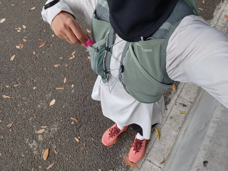 もうひとつ、私が使っているSALOMONのお気に入りといえばランニングベスト。走るときにコレ、本当に便利です。