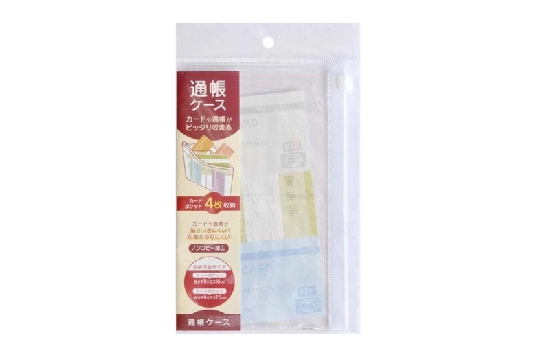 キャンドゥでは、クリアタイプの通帳ケースがパスポートケースにぴったり。ノンコピー加工で、カードや通帳が貼りつきにくく、印刷が写りにくくなっています。カードポケット4つ内蔵で便利。口コミでは「透明タイプなので中に何が入っているか確認しやすい」との声が。カード類といっしょにパスポートを持ち運びたい方におすすめです。