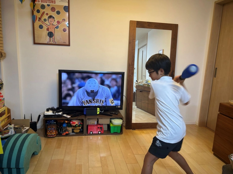 野球に興味を持つきっけかけは、ローカル番組で阪神タイガースの話題が多い、プロ野球チップスのカードを集めだした、タイガース好きの友達がいた、など色々。そして今年はタイガースがリーグ優勝。おかげでテレビ中継を見ながら、家でもバットを振り回していました(笑)。