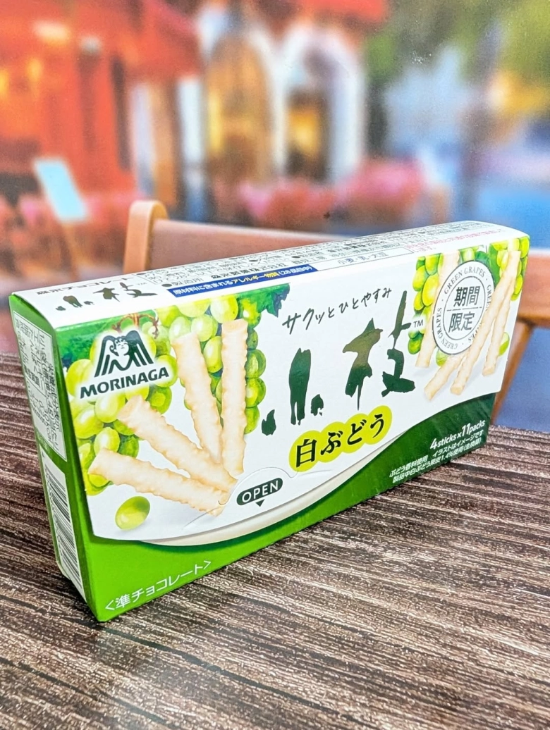 木の枝を模したチョコレート菓子「小枝」から、秋冬限定で「小枝<白ぶどう>」が登場しています。ホワイトチョコレートがベースになっており、華やかな香りが特徴的な白ぶどうの品種「ナイアガラ」の果皮パウダーを使用!一般的なチョコレート菓子とはひと味違う、上品な爽やかさを楽しめます。小枝の定番であるビスケットやパフも入っており、食感のよさも魅力です。