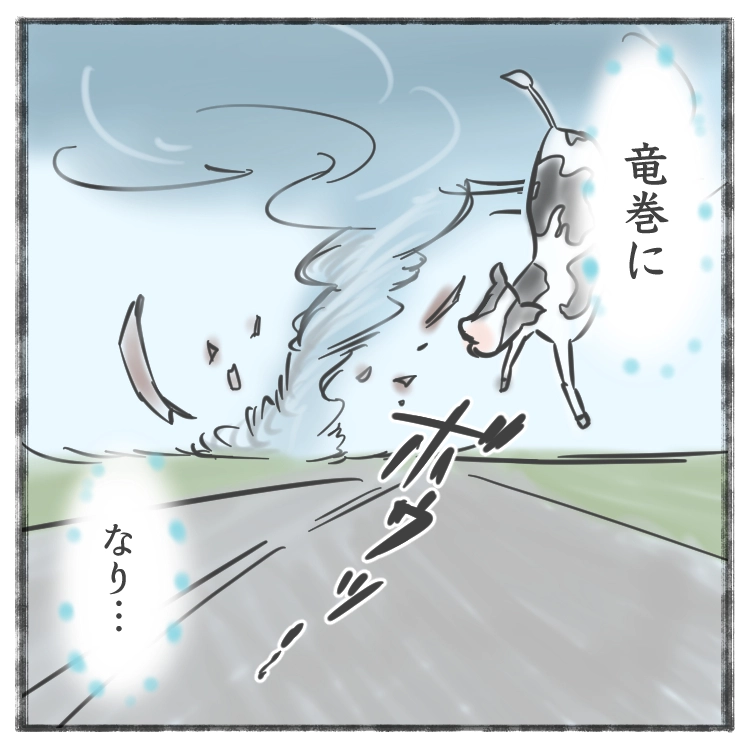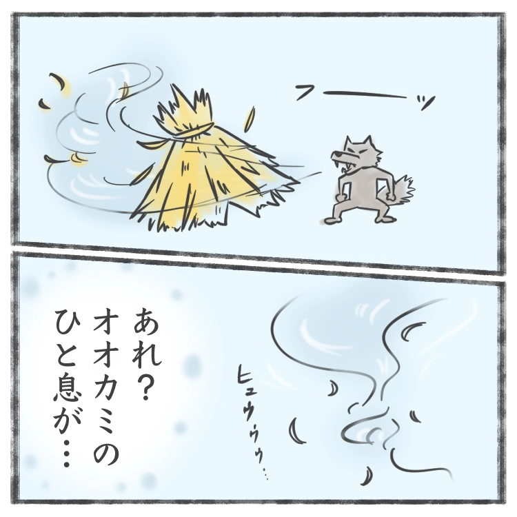 今回は三匹の子豚を読んでて、起こりました。何年か前に映画で「ツイスター」ってあったの知ってます?その映画のCMが強烈に頭に残っていて、ツイスター=竜巻が街を襲うんですけどそれが馬鹿デカくて、車、家、牛さえも飲み込んでいく…。そのシーンと三匹の子豚がコラボってました!なーーーーーんじゃそりゃ!ジージョに「は?」ってまじのトーンで言われちゃったよ、ははー!