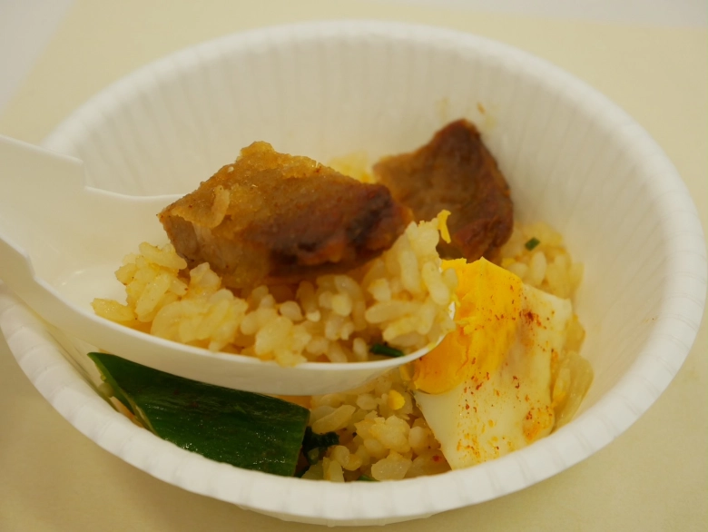 排骨は豚肩ロース肉に五香粉と調味料で下味をつけ、衣とカレー粉をまとわせてから揚げています。日本人好みの味わいに仕上げるため、五香粉を控えめにしつつ、最後にまぶすカレー粉をしっかりと香らせる工夫が施されています。レタス炒飯はホタテと椎茸のペーストで旨みを加え、玉子や青ねぎとともに自家製ネギ油で炒めることで、香り高い味わいに。実際にいただいてみると、パンチの効いた濃いめの味付けの豚肩ロース肉が印象的。五香粉の独特の味わいに台湾らしさを感じつつも、カレー粉がいい仕事をしてくれて現地感が出すぎず、いい塩梅に♪炒飯は比較的あっさりなのでバランスが良く、普段エスニック料理を食べない方や子どもにも食べやすい味わいです。