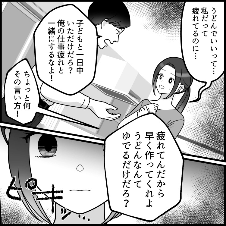 <後編>【最後にスカッと】「うどんくらいさっさと作れよ!妻の仕事だろ!」育児でグッタリしている時にモラ夫からありえない発言が!?
