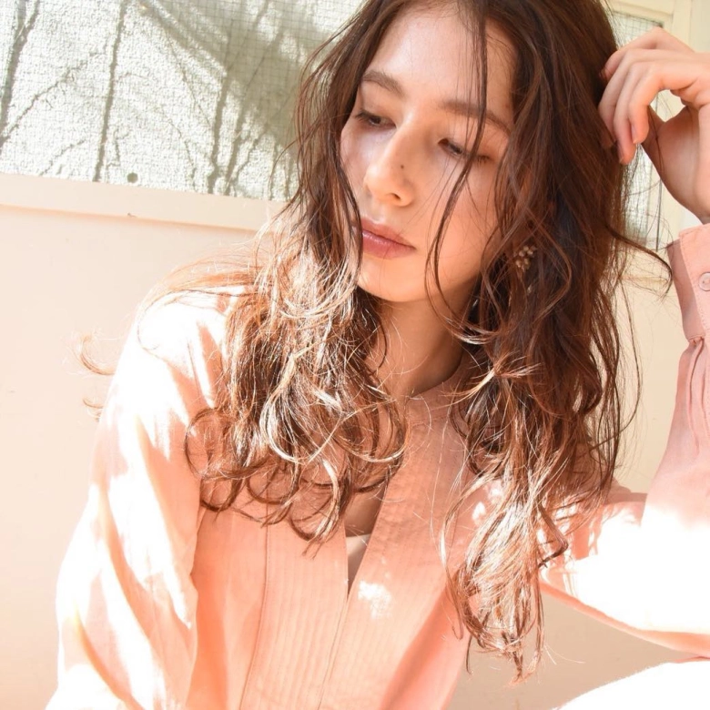 ロングヘアで気になる輪郭をカモフラージュするなら、前髪なしのパーマスタイルもおすすめです。前髪なしにすることで、顔の縦のラインを強調。加えて、大きめのウェーブに視線が集まりやすいため、コンプレックスに感じている丸顔やぽっちゃりした輪郭から目線を分散させられます。