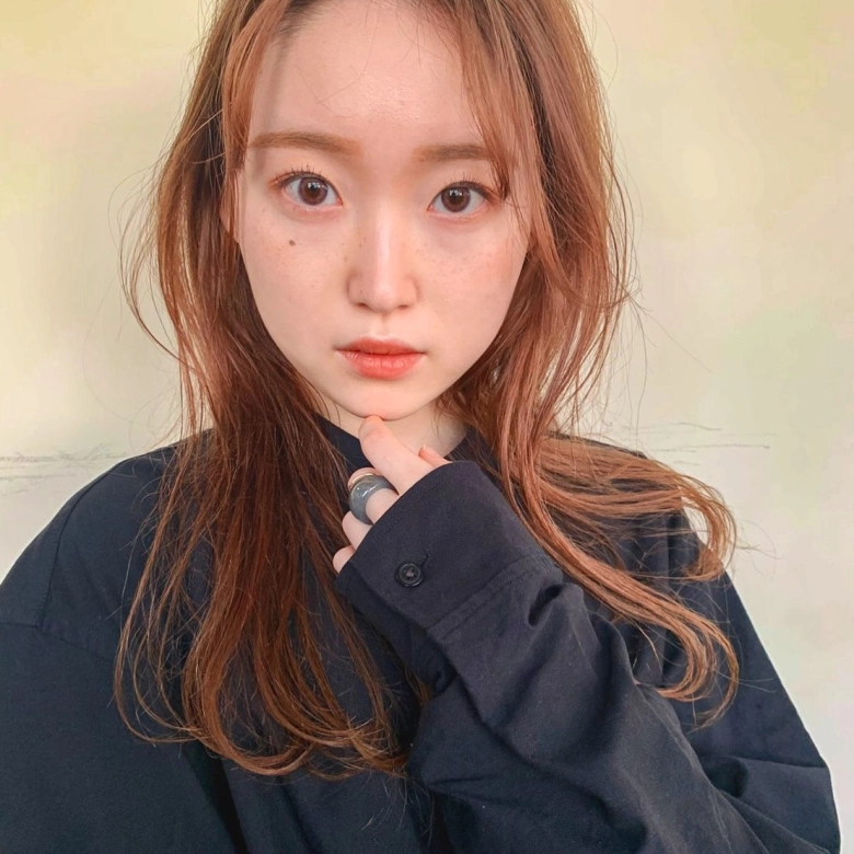 こちらのスタイルは、もみあげ部分のおくれ毛もポイント!耳にかけたとき、丸顔さんの輪郭がひと回り小さく見える効果があります。ミディアムヘアで耳にかけることが多い場合は、おくれ毛を作ってもらうのもアリですよ。