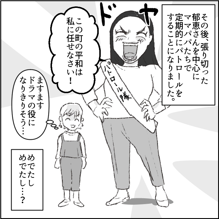 不審者は勘違いだったものの、郁恵さんを中心に町のパトロールが強化されることになったようです。彼女がいれば心強いこと間違いなしですね!