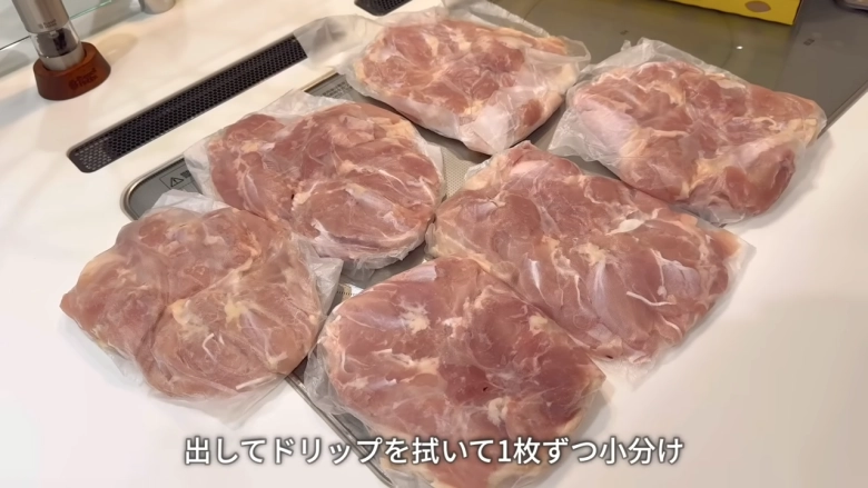 ayaさんは、スープ用や唐揚げ用、オーブン焼き用と用途ごとに袋に分け、そのまま冷凍保存。大容量の商品を冷凍する場合は、後ほど使いたい分だけ解凍できるよう、あらかじめ必要な量を小分けにしておくのがポイントです。
