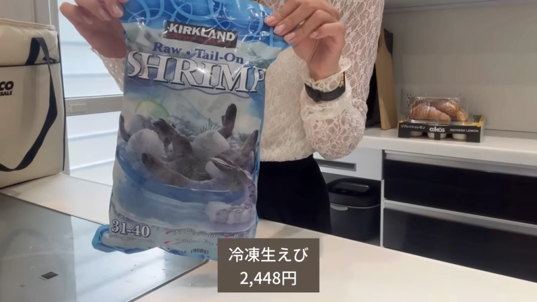 コストコのプライベートブランドである『KIRKLAND SIGNATURE(カークランドシグネチャー)』の冷凍生エビです。