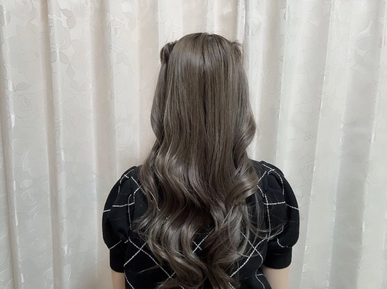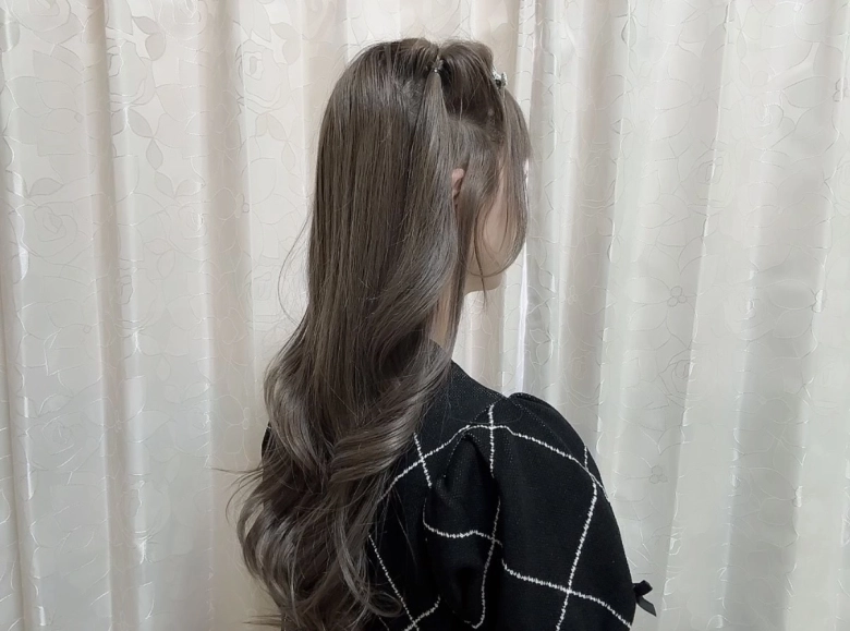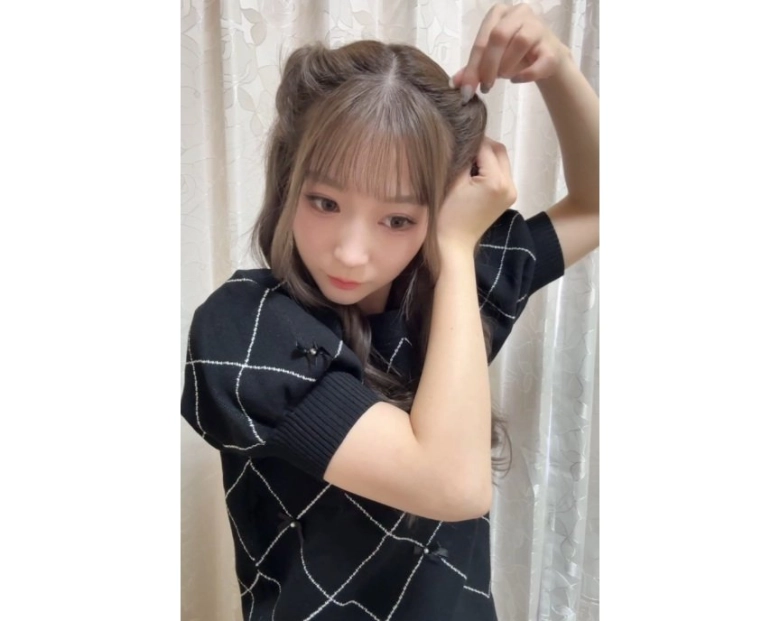 - こめかみ辺りの位置からハーフツインに結ぶ