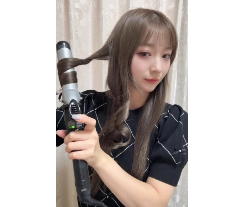 全体を巻き終わったら、顔周りの毛をとってこれも外巻きにサッと巻きます。
