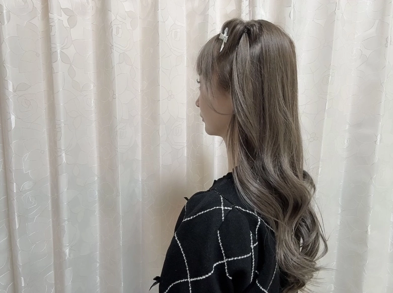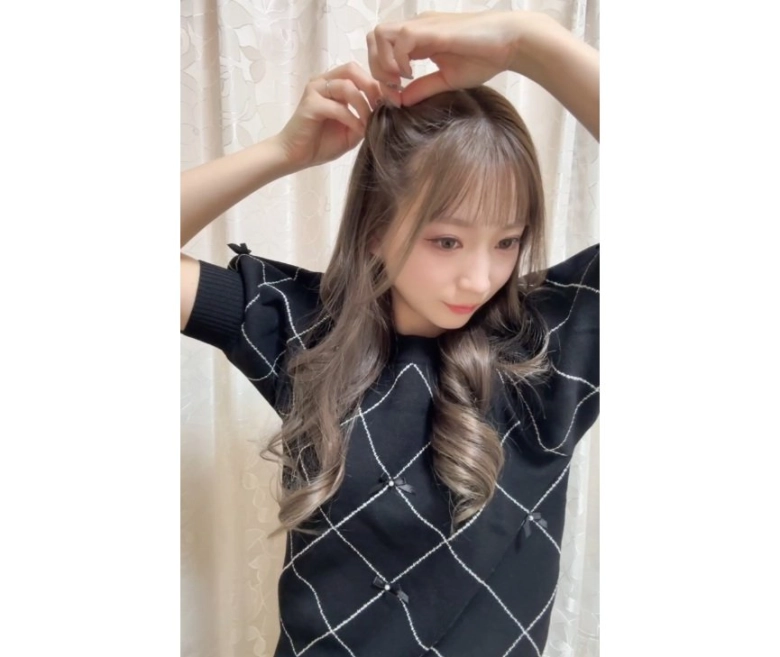 3. こめかみ辺りの位置からハーフツインに結ぶ